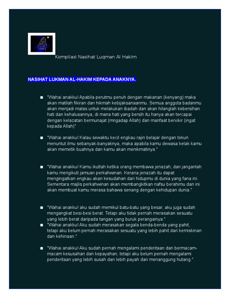 Related : Nasihat Luqman Al Hakim Tingkatan 4 / The.Another.One: 25 Wasiat Luqman Al Hakim Kepada Anaknya / Beliau terkenal karena nasihat yang diberikan pada anaknya..